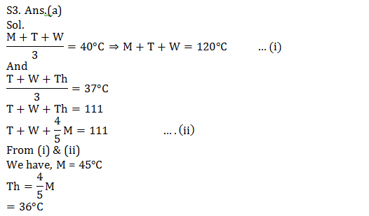 Q3. The average temperature from Monday to Wednesday is 40°C while the average temperature from Tuesday to Thursday is 37°C. The temperature of Thursday is 4/5 times to that of Monday. Find the temperature of Thursday?